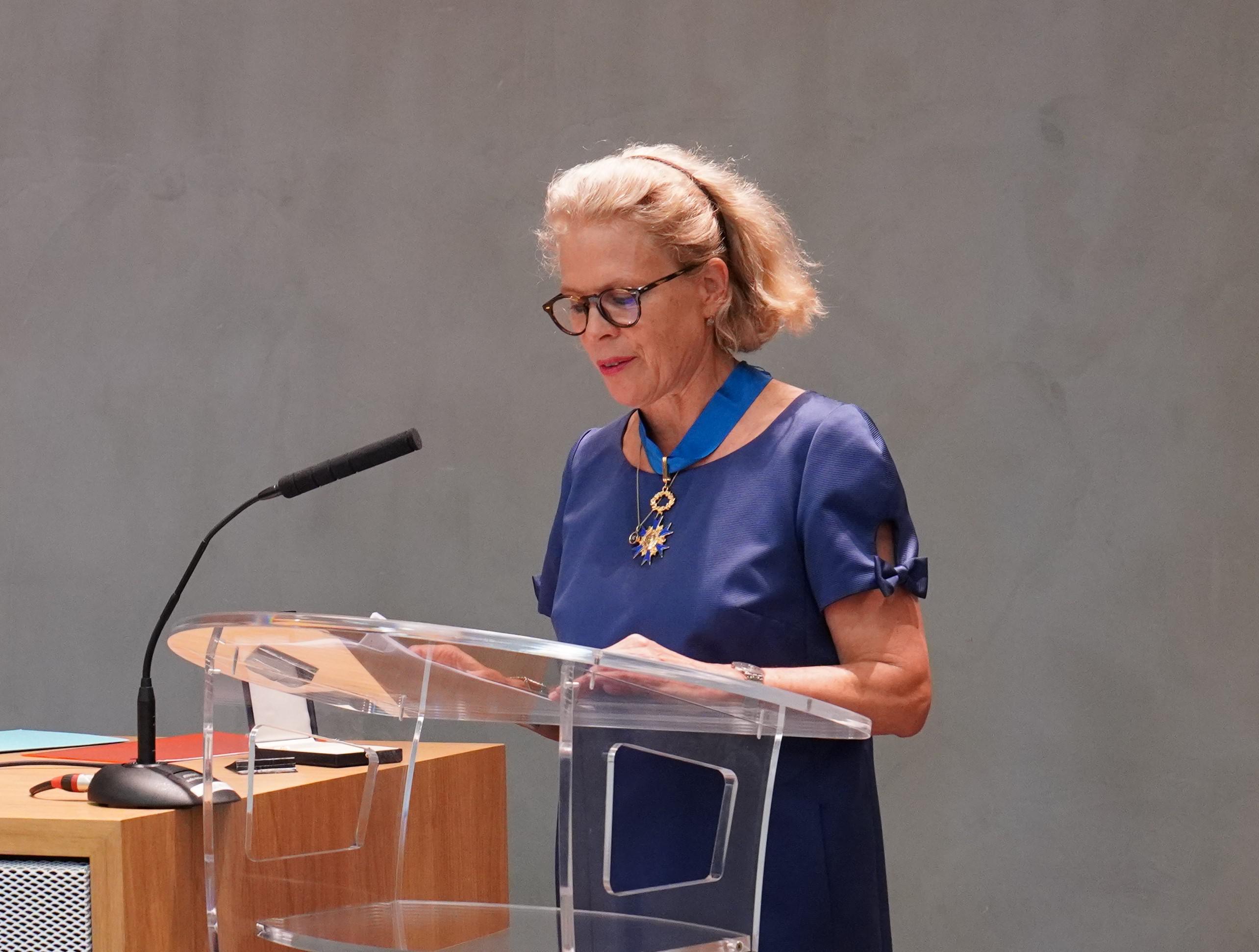 Le Pr Hélène Dollfus, PU-PH, cheffe du service de Génétique Médicale aux HUS, spécialiste en ophtalmologie et en génétique médicale, mais aussi directrice du laboratoire de recherche UMRS_1112 (Inserm/Université de Strasbourg) au Centre de Recherche en Biomédecine de Strasbourg, s’est vue remettre les insignes de commandeur de l’Ordre national du Mérite ce vendredi 19 septembre à l’Institut de Génétique Médicale d’Alsace, où elle exerce.