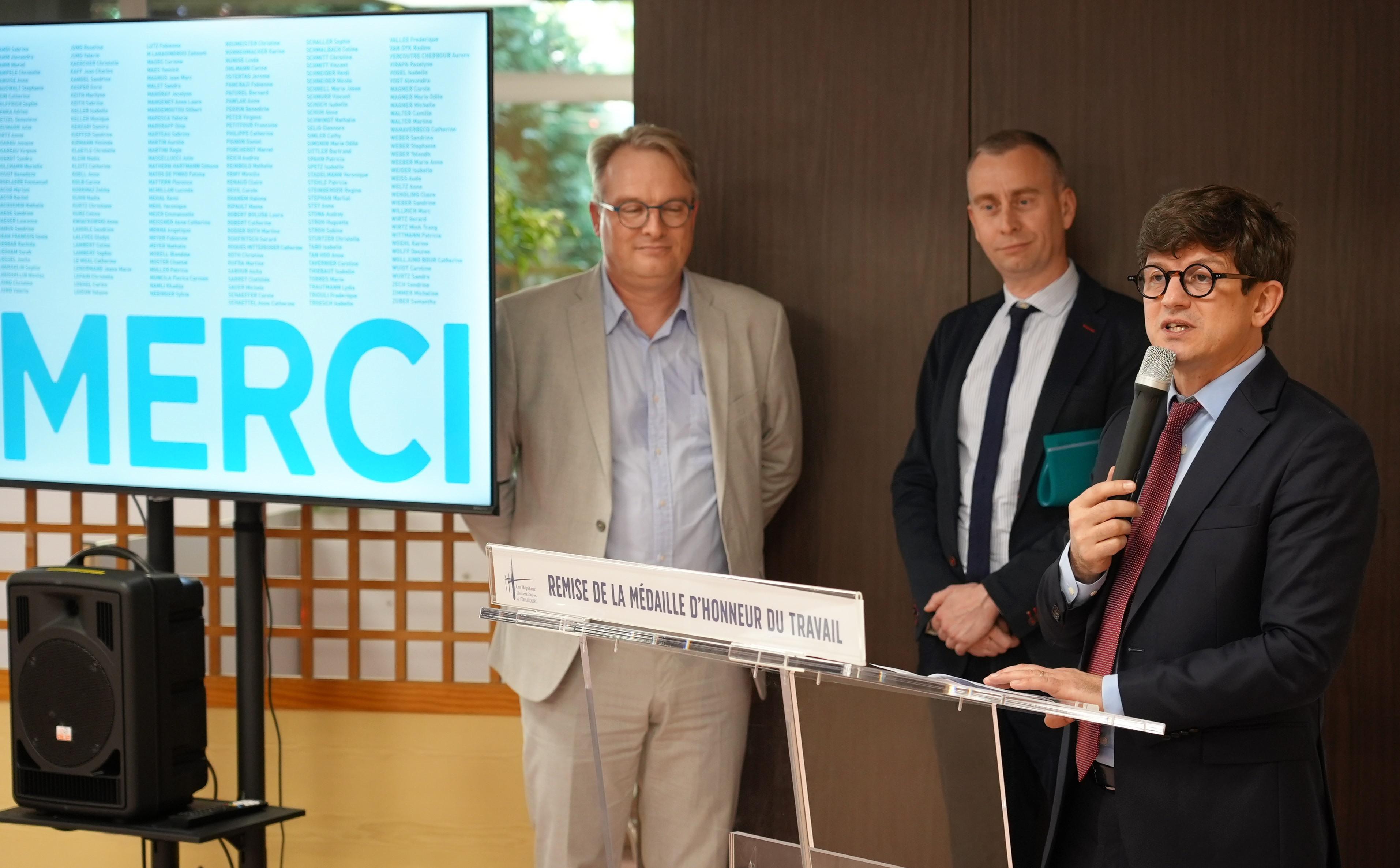 Après une première cérémonie début septembre, les Hôpitaux Universitaires de Strasbourg ont poursuivi la remise de la médaille d’honneur du travail sur les sites du Centre-Ville et de Hautepierre.