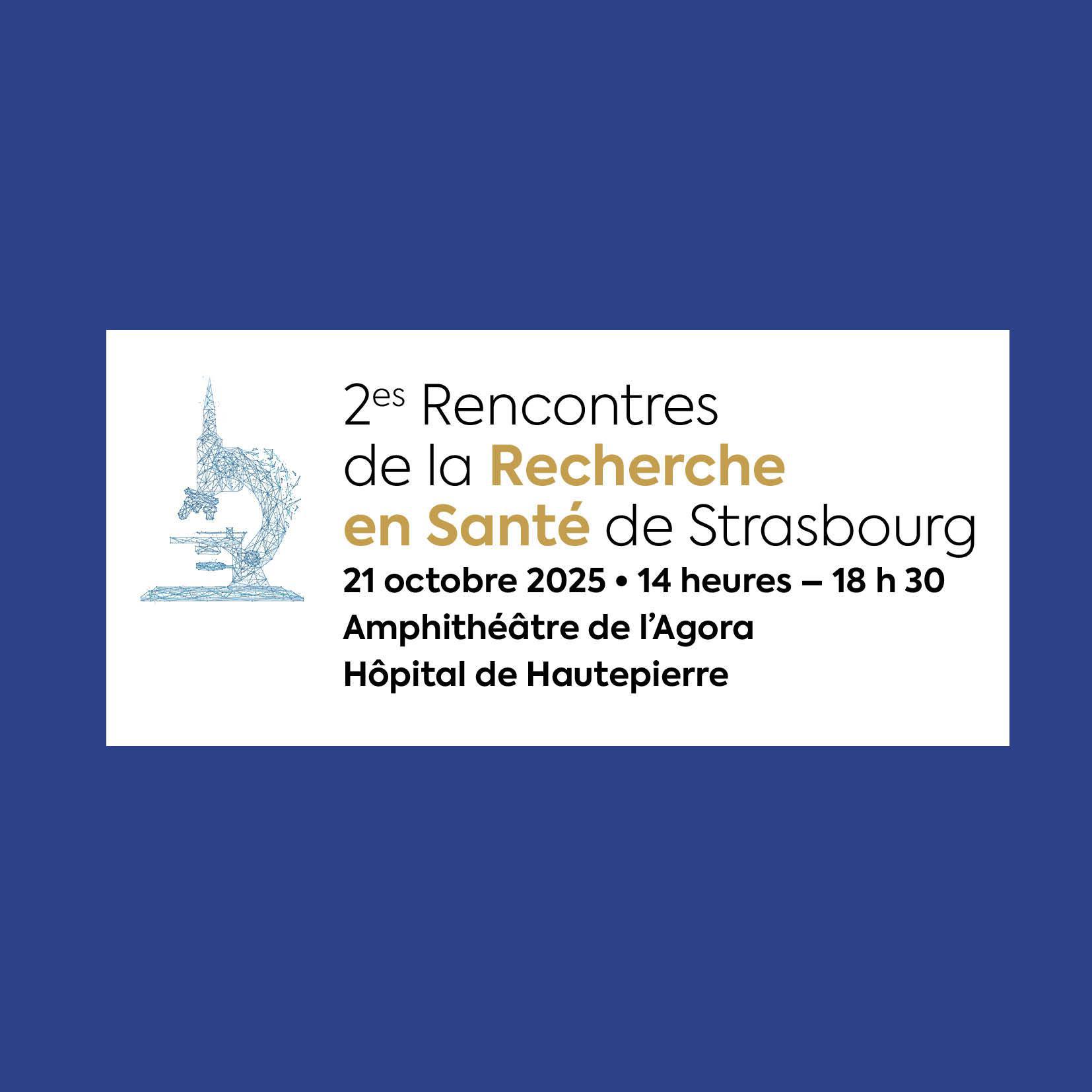 Les Hôpitaux universitaires de Strasbourg et la Faculté de Médecine, Maïeutique et Sciences de la Santé vous invitent aux 2ᵉs Rencontres de la Recherche en Santé, le mardi 21 octobre 2025 à l’Amphithéâtre de l’Agora (Hôpital de Hautepierre).