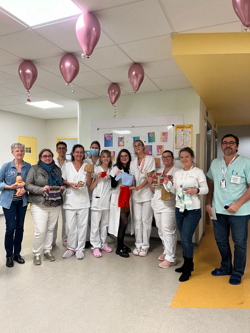 L’association SOS Préma a remis des layettes tricotées avec soin par des bénévoles, tandis que l’association ESPPACES a offert de petits livres d’éveil destinés à encourager les échanges vocaux entre parents et enfants, si précieux pour le développement du langage.