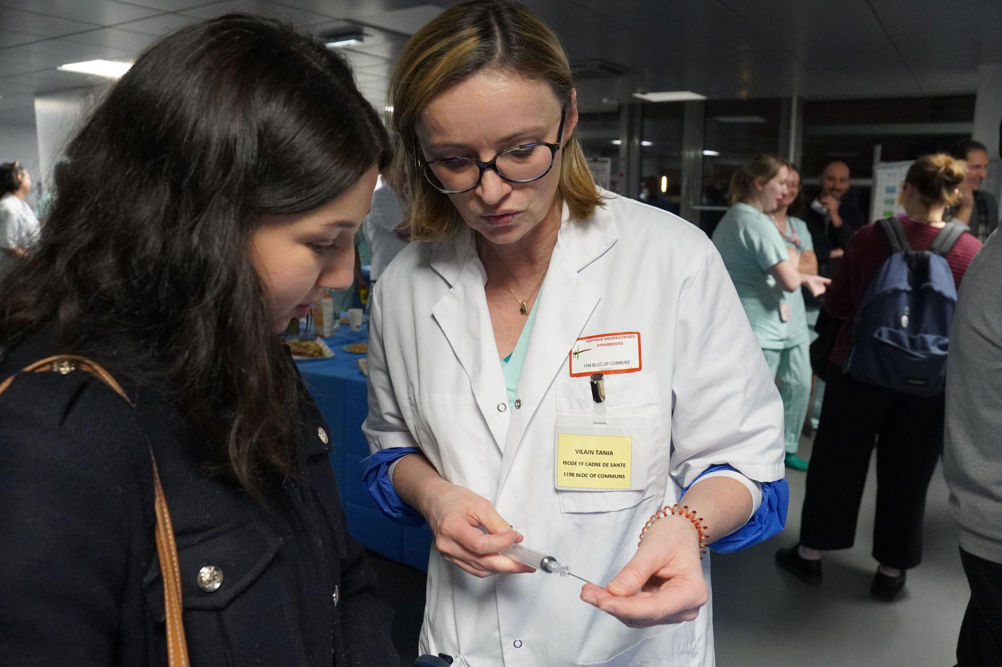 Après Hautepierre, les équipes des blocs opératoires du Nouvel Hôpital Civil ont accueilli étudiants et infirmiers confirmés pour leur faire découvrir les métiers d’IBO et d’IBODE au CHRU de Strasbourg - Hôpitaux Universitaires de Strasbourg.